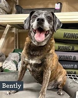 Bently arrived at the Calypso Sanctuary on 1 October 2025 from the Second Chance Ranch Rescue in NH. He was almost 12 years old, weighed 42 lbs, and was a boxer mix of some kind. Quiet and gentle, he got along great with his new big brother Pipifax, the cats, and the grandkids. He loved going on walks and was great with the other dogs. He didn’t like being alone and followed Mom & Dad around the house. Fortunately, he slept through the night and was able to handle stairs and jumping up on couches easily. He was a keeper! Needless to say, he was spoiled rotten and he will be sorely missed.