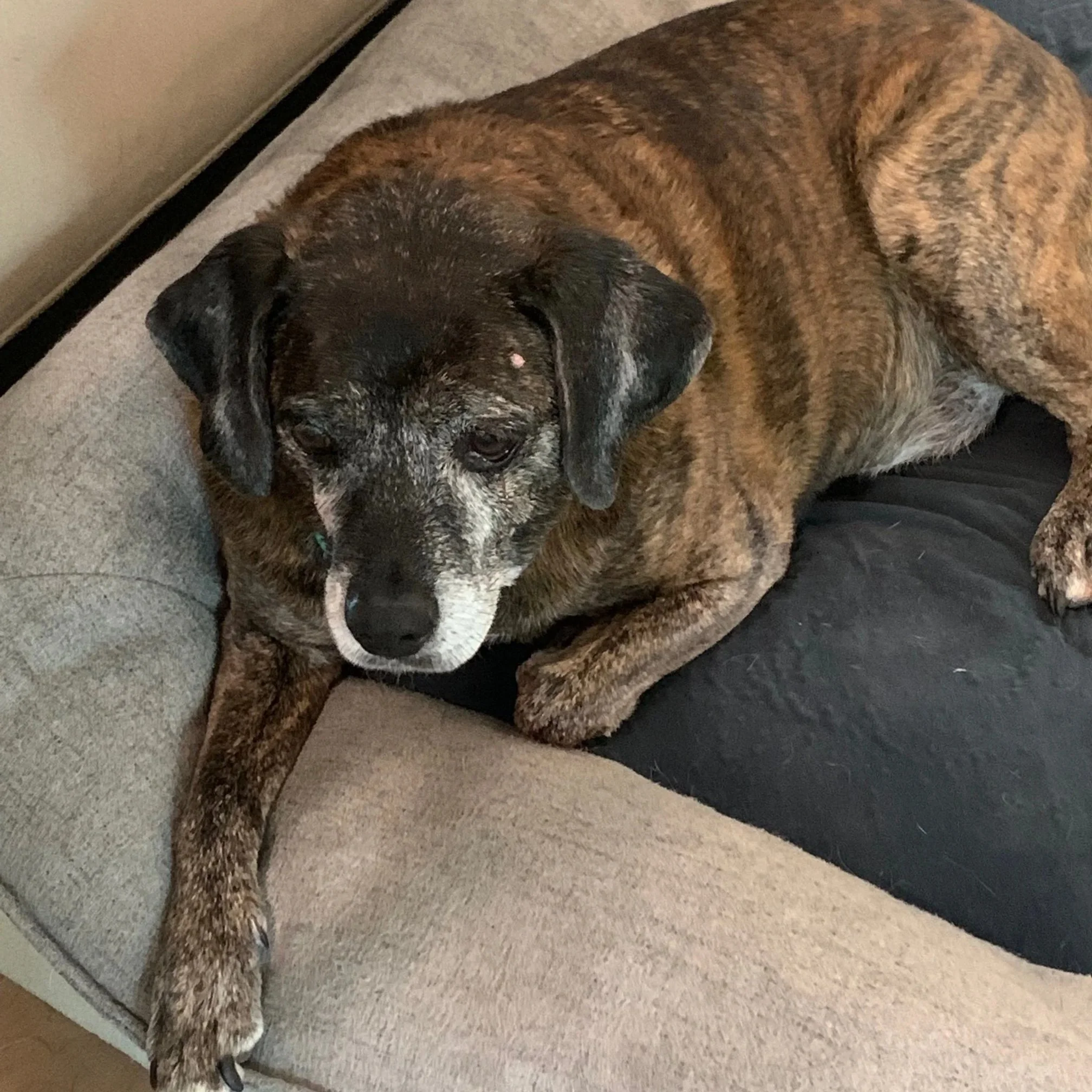 Pipifax, a 13 1/2 year old beagle/shepherd mix, arrived at his new home here in Tiverton RI with the Calypso Sanctuary from a rescue in CT on January 1st, 2024! He has completely settled in to the house routine and is part of the family. He sleeps through the night on his couch in the dog room, ignores the kitties and they ignore him, eats everything offered to him, pretty much ignores Julie but she will let him know if he bugs her too much, loves going on walks/hikes with Dad & Mom, and interacts well with the grandkids. Overall - a very happy pup and a very relieved/pleased Mom & Dad! Unfortunately, he was diagnosed with leukemia in July 2024 and is undergoing treatment but so far, he is in remission. Hang in there Pipifax!
