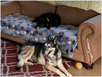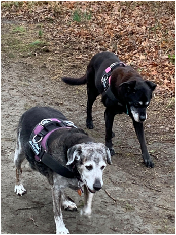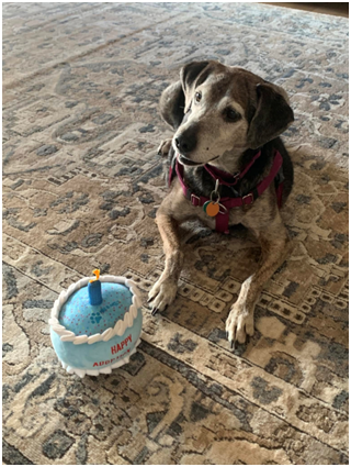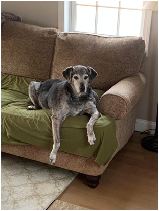 Abby, age 8, is a loyal girl through and through. She quickly became attached to ‘Dad’ and can always be found by his side. Her favorite pastime with him, or a lucky visitor, is playing fetch in the backyard… and she doesn’t hesitate to be sassy and bark until someone throws the ball. If the ball squeaks, even better! Abby is a well-mannered, stoic gal who isn’t afraid to get a little vocal and let everyone know she’s there. She loves to get brushed every morning after going on daily walks. She remains close with her life-long/bonded friend Julie. Sadly, Abby crossed the Rainbow Bridge in November 2021 due to a ruptured internal tumor.